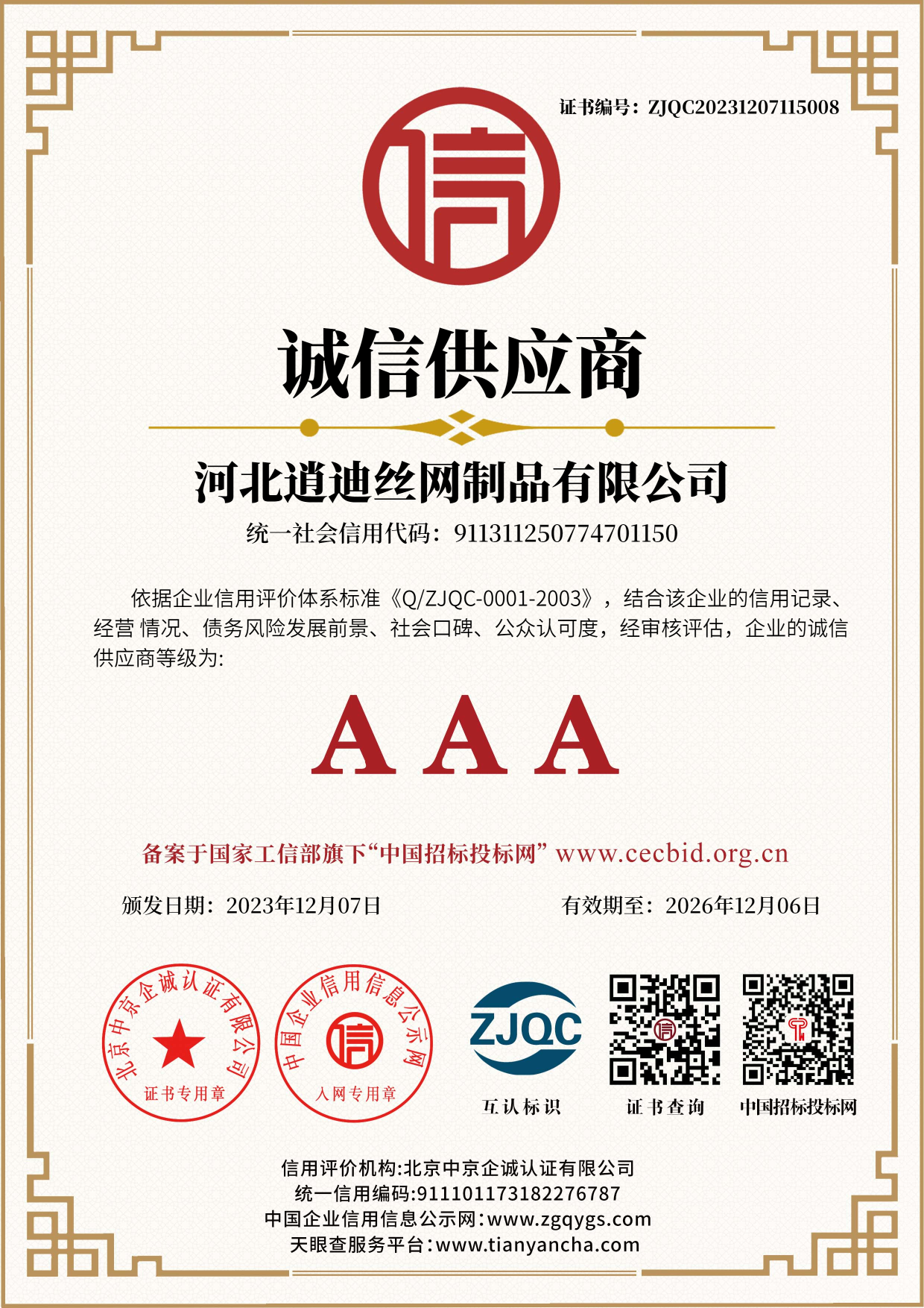 河北逍迪絲網(wǎng)制品有限公司誠信天下,誠信是我們公司一個(gè)原則問題不可撼動的,以心中有誠信的思想結(jié)交五湖四海的朋友,能達(dá)到雙贏是最好的,我們堅(jiān)信朋友多了路好走,我們公司都是老朋友多,我們一直是這樣做的。河北逍迪絲網(wǎng)制品有限公司成立于2013年注冊資本壹仟伍佰萬整,主要生產(chǎn)沖孔網(wǎng),鋼格板,金屬防蟲網(wǎng),如實(shí)的實(shí)體廠家,是一家-研發(fā)-銷售-生產(chǎn)-安裝-售后一條龍公司,2019年通過了ISO 9001認(rèn)證管理體系符合GB/T 19001-2016/ISO 9001:2015標(biāo)準(zhǔn),同時(shí)通過了SGS認(rèn)證,擁有商標(biāo)版權(quán)2品牌,擁有一個(gè)著作版權(quán),河北逍迪絲網(wǎng)制品有限公司位于中國有名的(絲網(wǎng)之鄉(xiāng))安平縣,于天津,北京,雄安,石家莊相鄰,交通非常發(fā)達(dá),出口可以選擇天津港口非常近每天都有接貨送貨往返車輛,空運(yùn)可以選擇石家莊正定機(jī)場,附近也有鐵路運(yùn)輸,當(dāng)?shù)剡€有兩個(gè)生態(tài)物流園區(qū)發(fā)往全國各地,我們沖孔網(wǎng)工廠生產(chǎn)設(shè)備有:普通沖壓機(jī),高速沖壓機(jī),自主研發(fā)小微孔沖壓機(jī),龍門沖,磚塔沖孔,重型沖孔機(jī),萬瓦級別激光切割機(jī),3000W激光切割機(jī),焊接設(shè)備,折彎機(jī),校平機(jī),剪板機(jī),精密校平機(jī),(對板面平整度要求苛刻的客戶群體0.5-0.2誤差)我們公司銷售市場沒有局限性國內(nèi)國外都供應(yīng),擁有出口權(quán)...